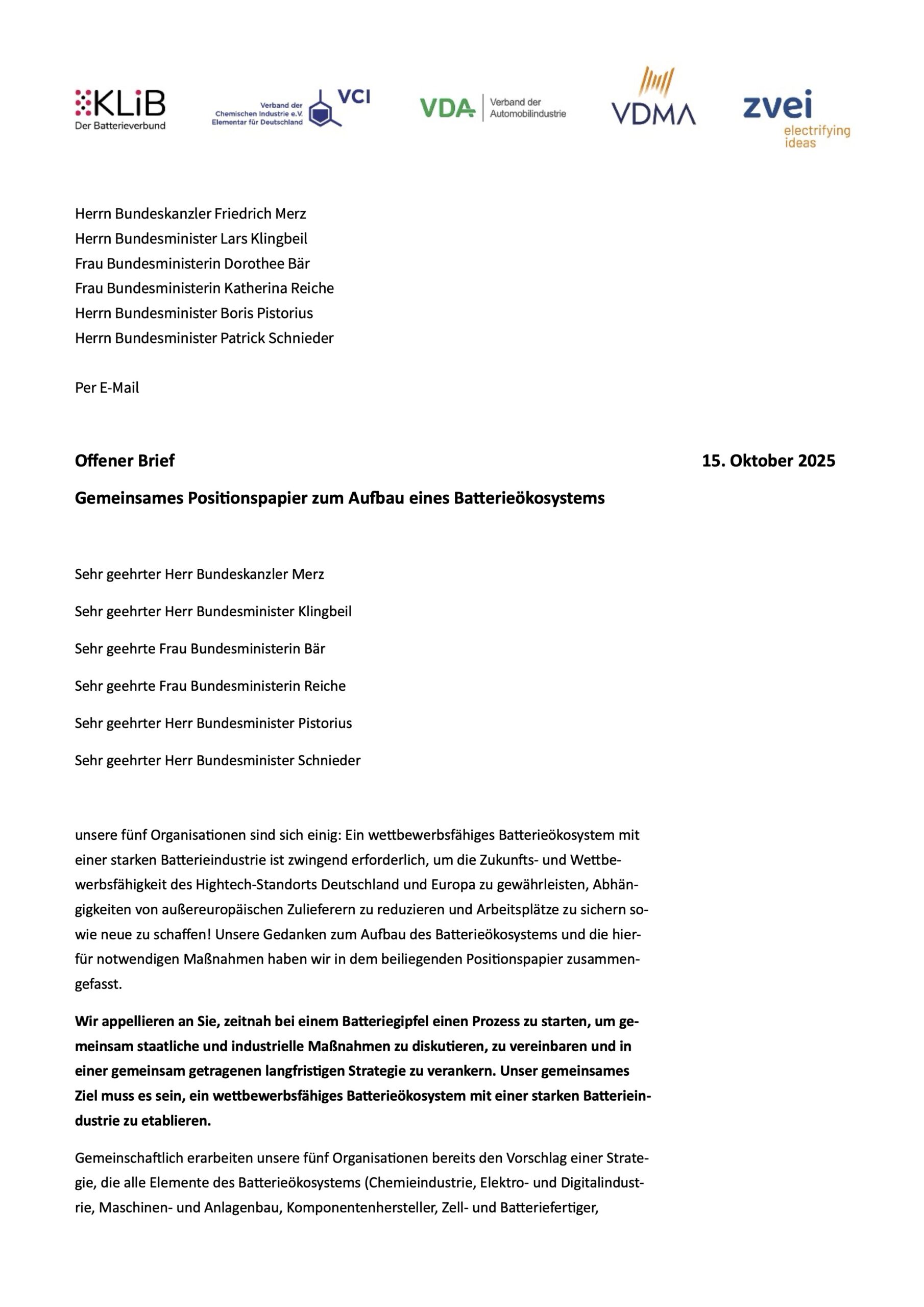 „Notwendigkeit eines wettbewerbsfähigen Batterieökosystems in Deutschland und Europa“