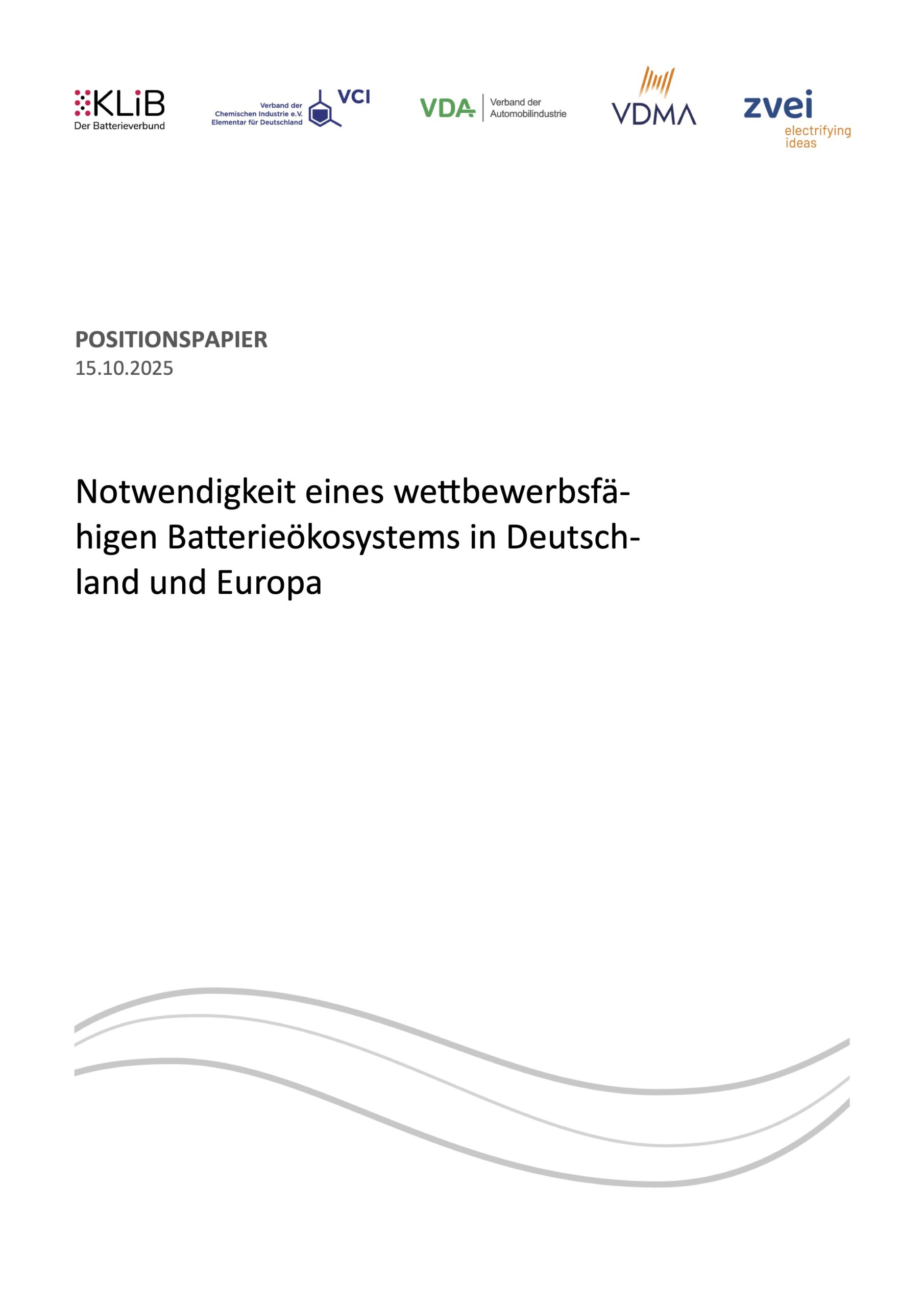 „Gemeinsames Positionspapier zum Aufbau eines Batterieökosystems“